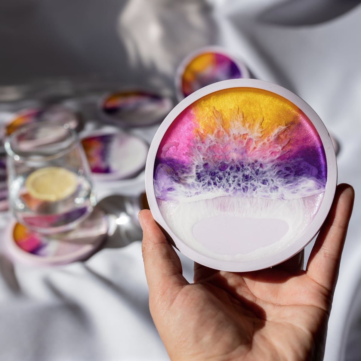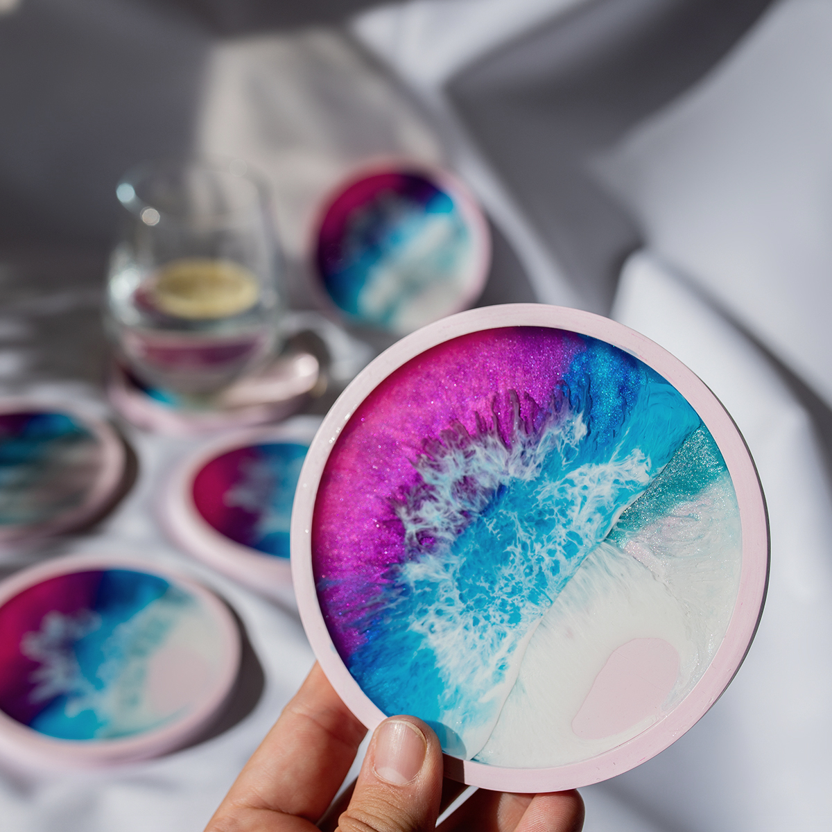 Podkładka Ø10,8 cm, na gipsie, okrągła, kolor różowy pastelowy
