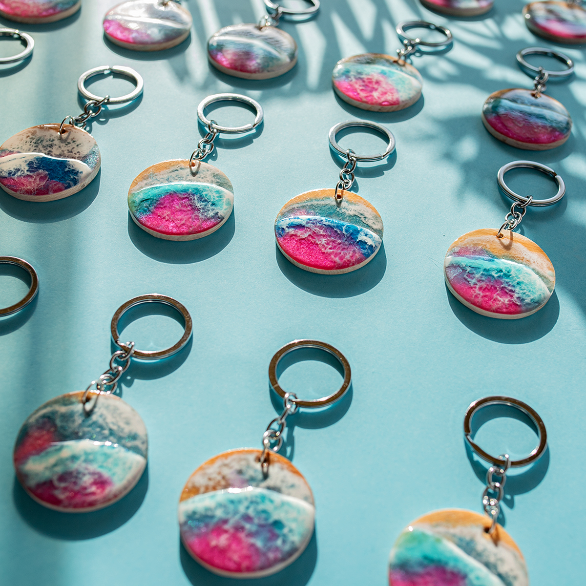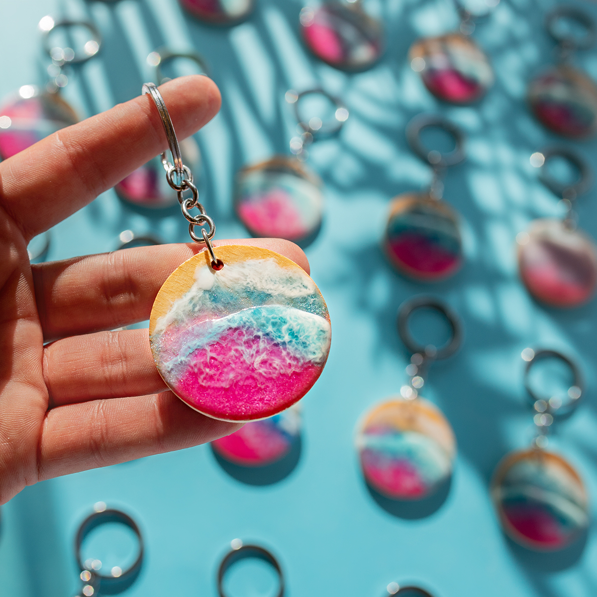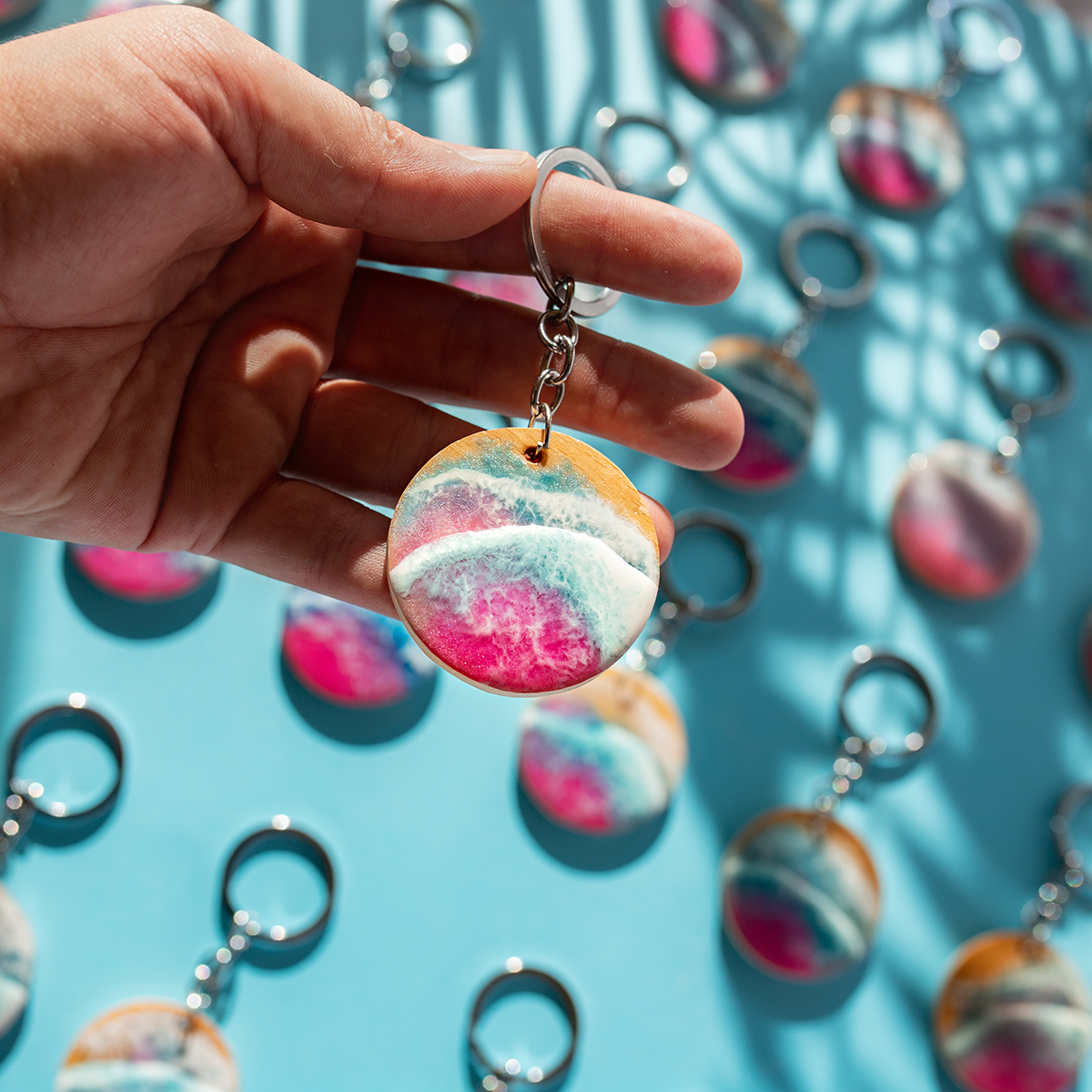 Każdy breloczek tworzę ręcznie, na bukowym drewnie, malowany 2 warstwami żywicy,